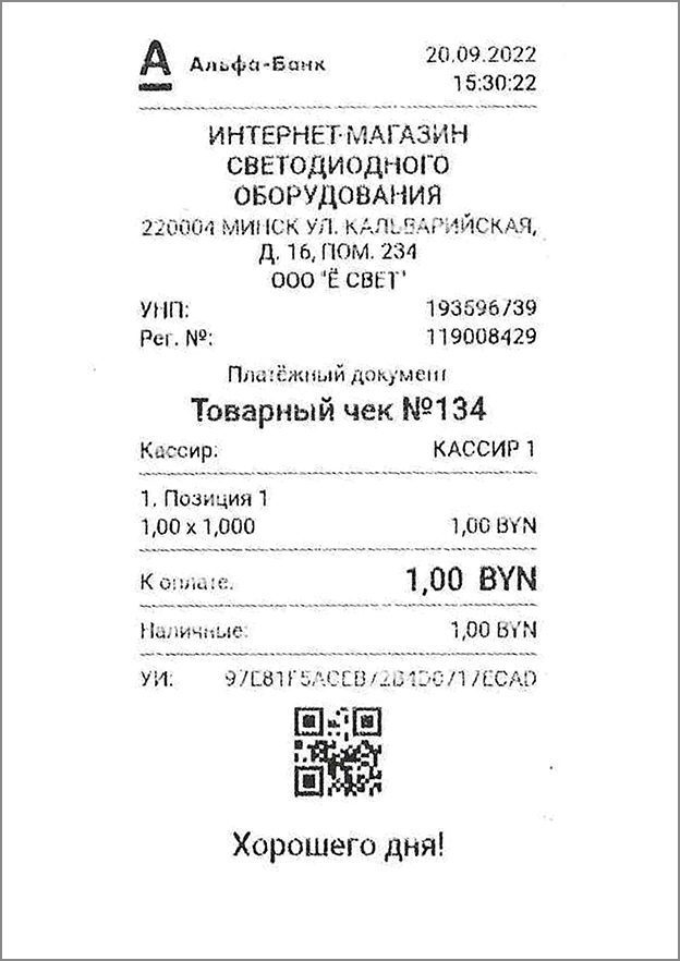 • Кассовый чек – официальный документ, подтверждающий оплату.